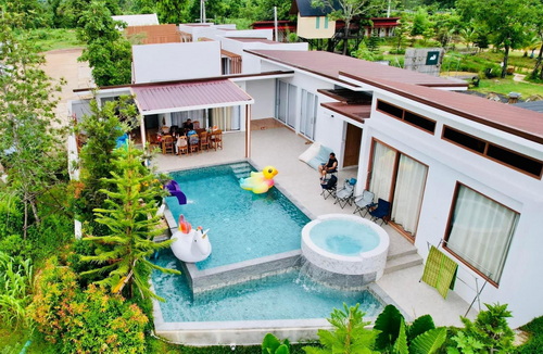 11.ภูนิภา วิลล่า ที่พักเปิดใหม่ในเขมราฐ แนวบ้านพักพูลวิลล่า มีสระว่ายน้ำ มีห้องพักสำหรับครอบครัว และมีเตาปิ้งย่างให้บริการทำอาหารทานได้ด้วย